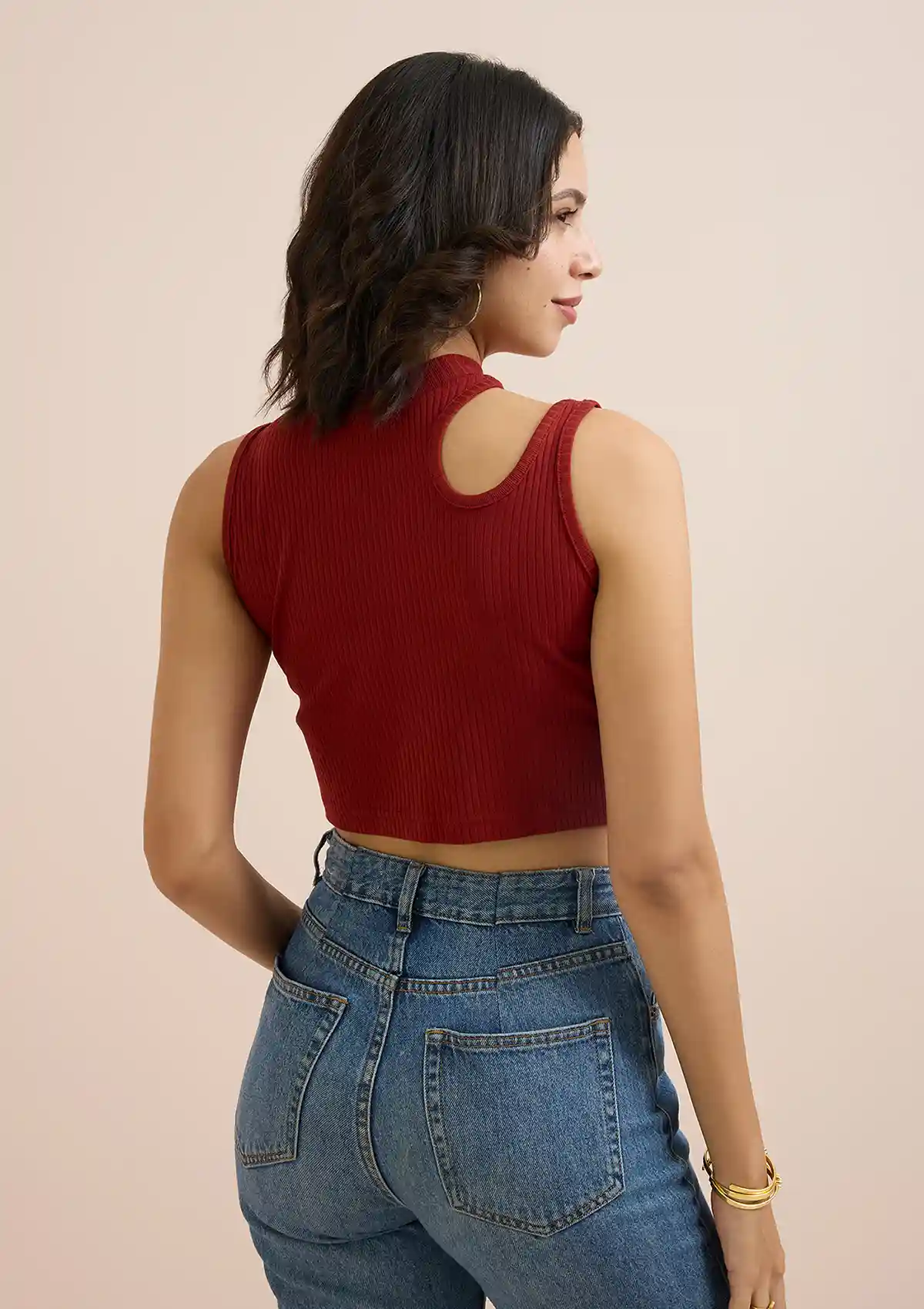 Our Elegant Burgundy Ribbed Crop Top is a timeless addition to any fashion-forward wardrobe.