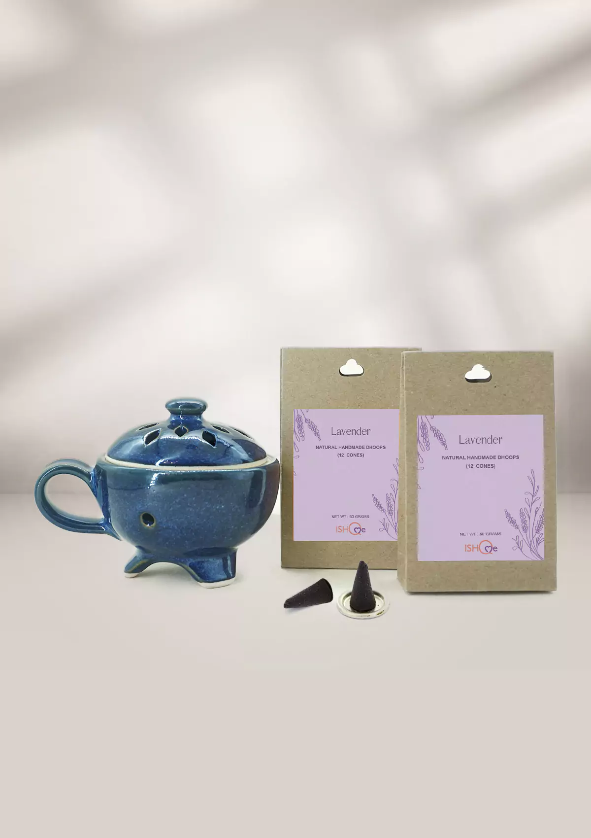 Deep Blue Dhoop Stand and Dhoop Cones Combo