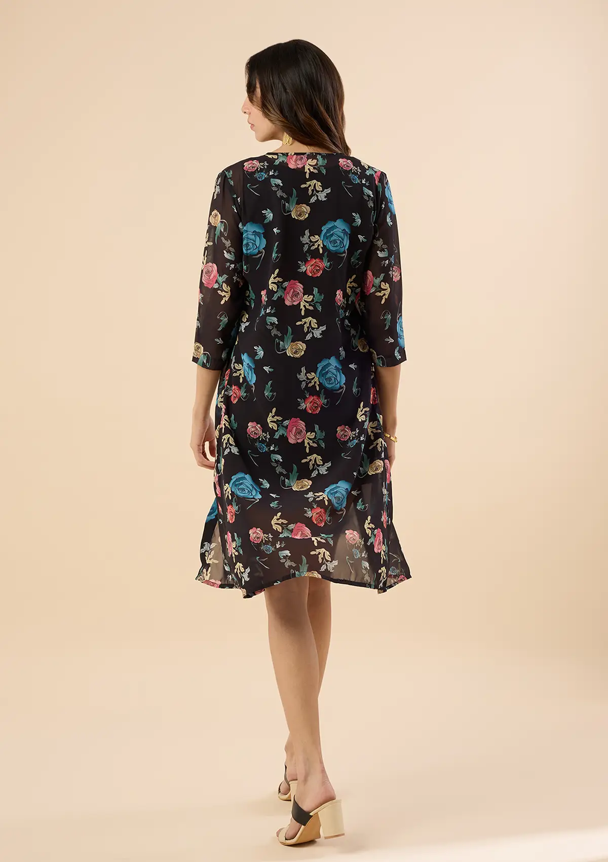Turn heads at every evening affair with Black Rose's Floral Printed Two Piece Dress β a symphony of chiffon elegance and satin sophistication. Complete your outfit with contrast heels