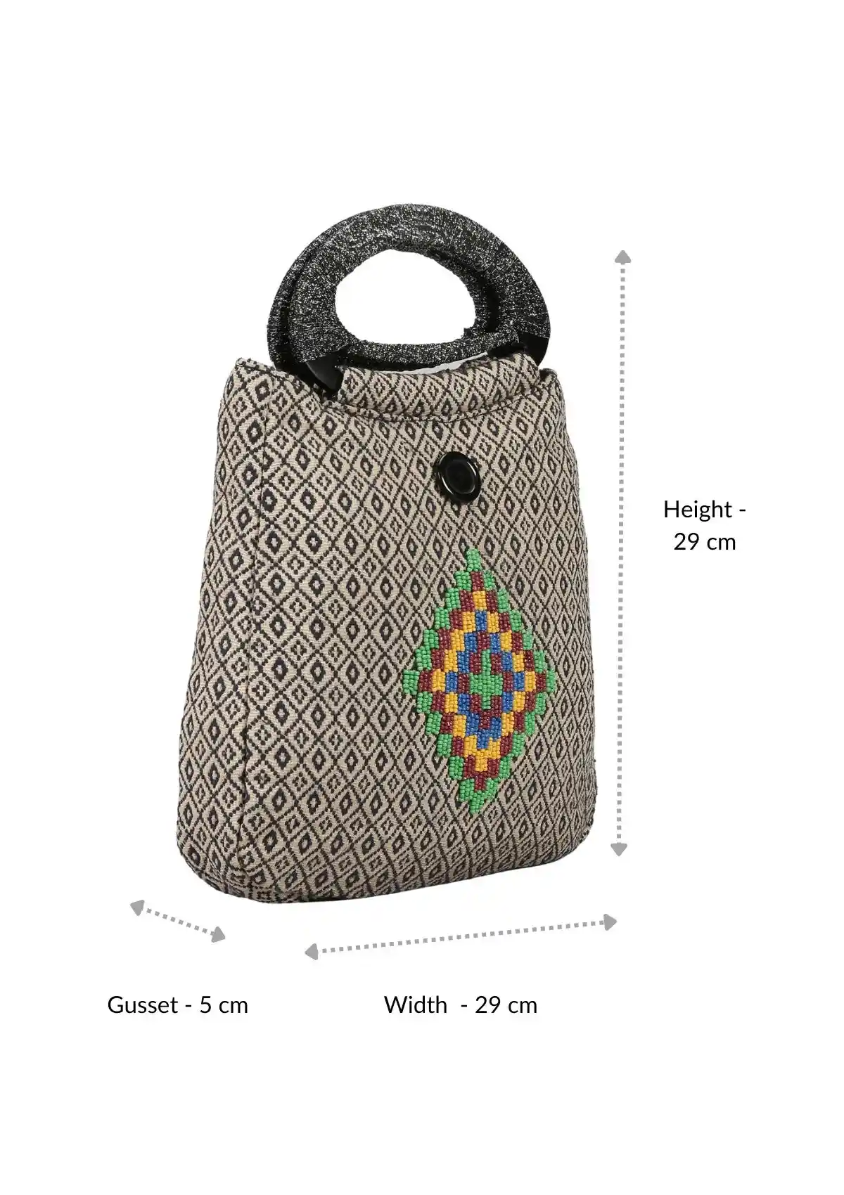 Discover the runway-ready style with our Jacquard Handheld bag that has an Aztec-inspired beadwork at the centre.