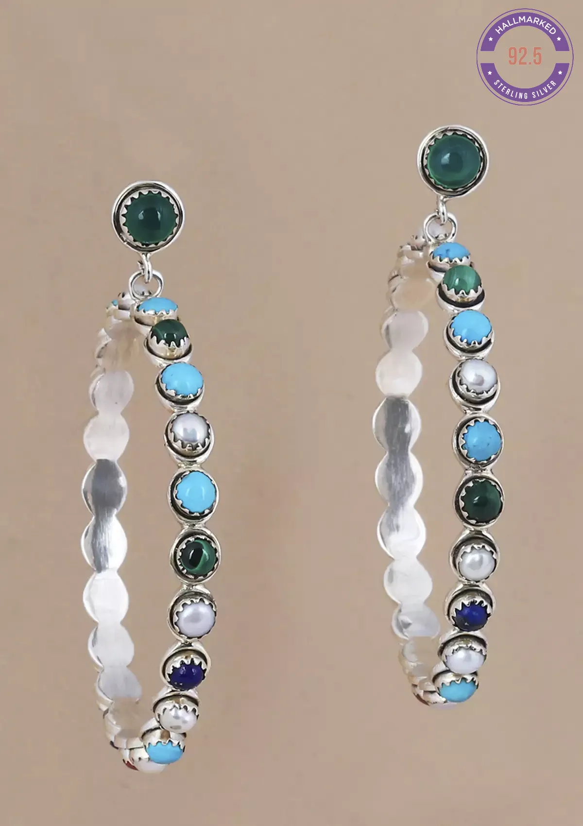 Silver Hoop Earrings studded with natural gemstones