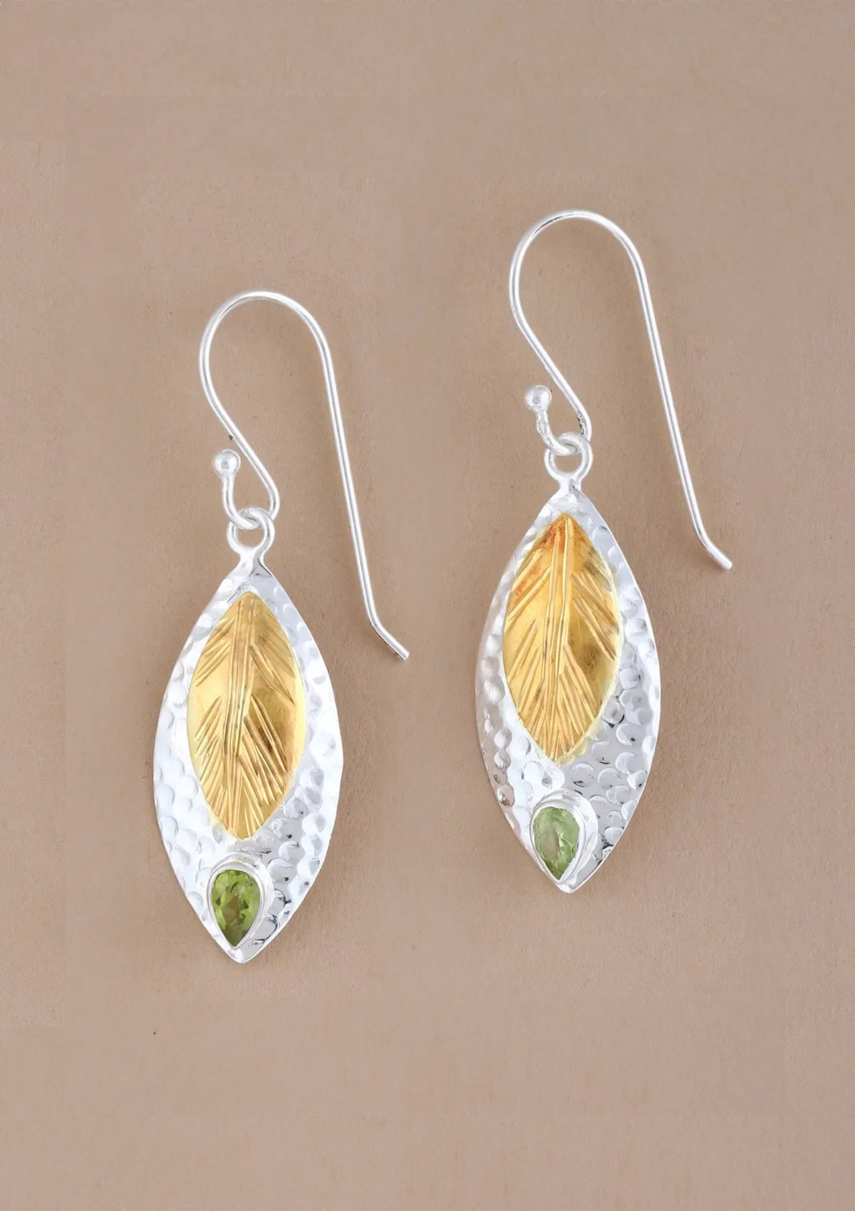 - Go breezy chic with these dual-toned silver peridot studded dangler earrings.