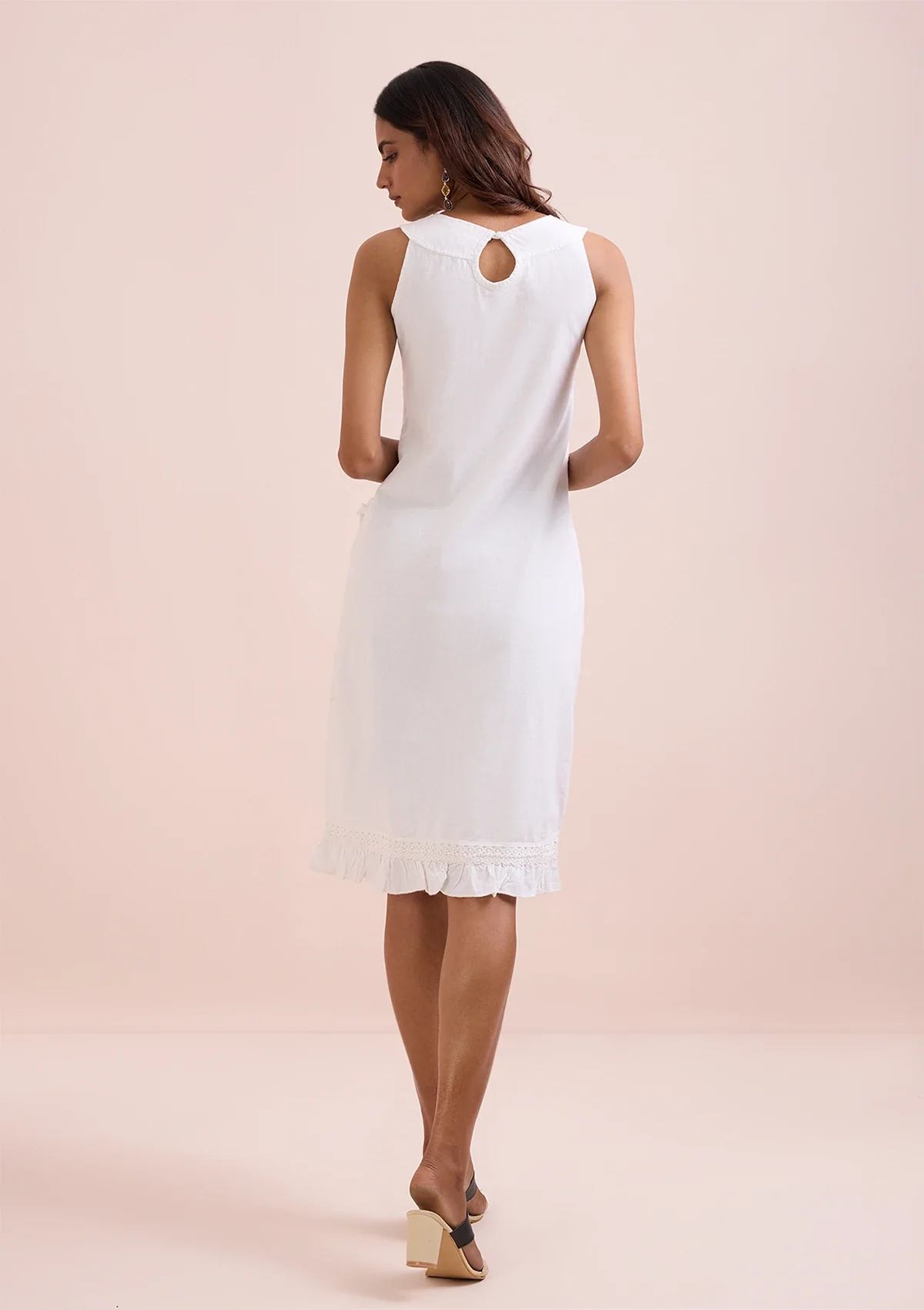 Step out in style with our Stylized Neckline Dress. Crafted from 100% cotton, this dress offers a comfortable fit while the stylized neckline and frills make it stand out